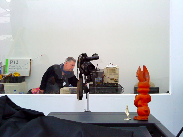 I’m also interviewing Frieze Project artist Shahyar Nashat about his work, Sat morning sometime, as I write we are still working on the parabolic speaker over the booth…